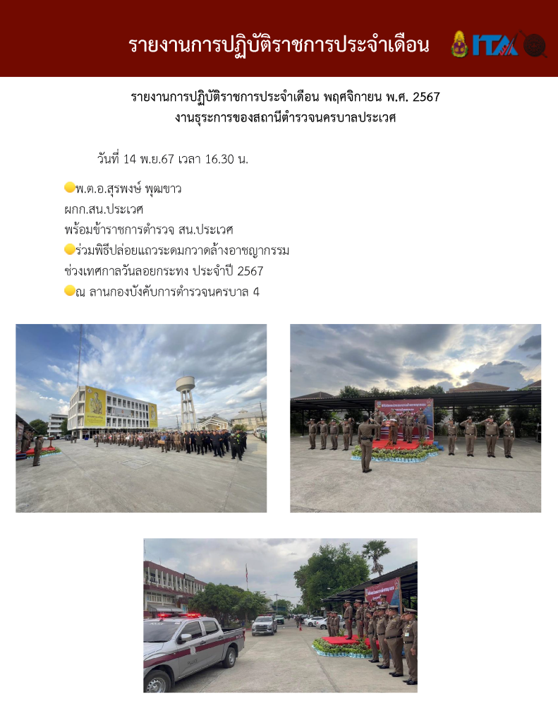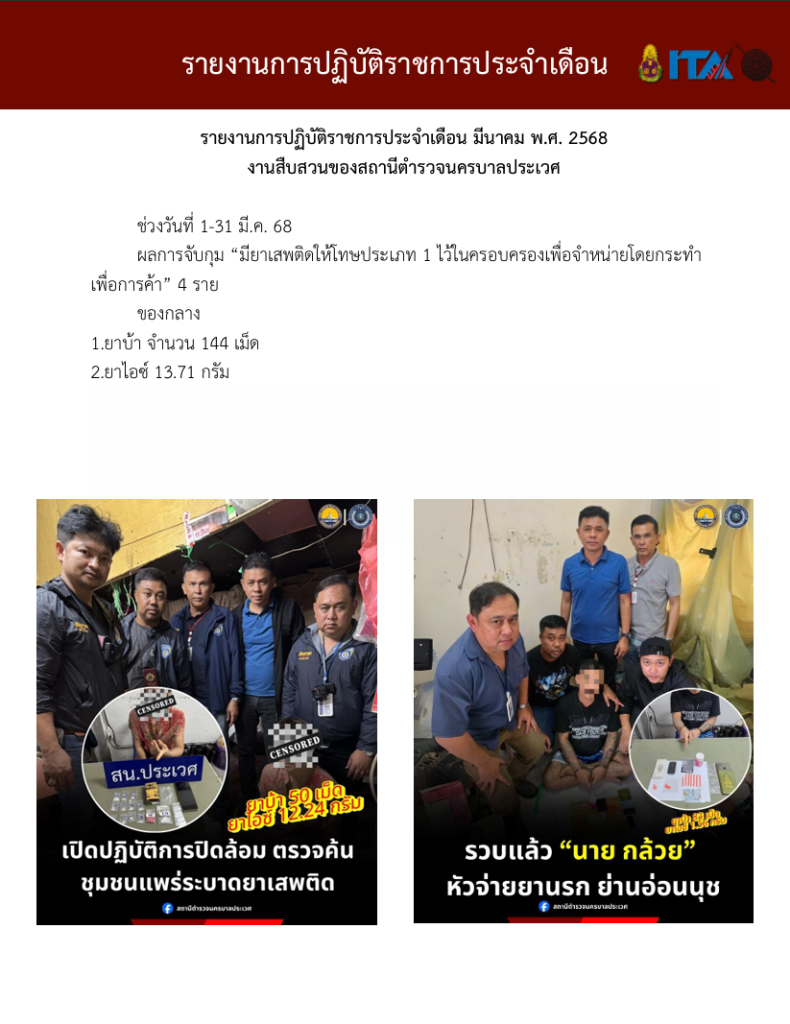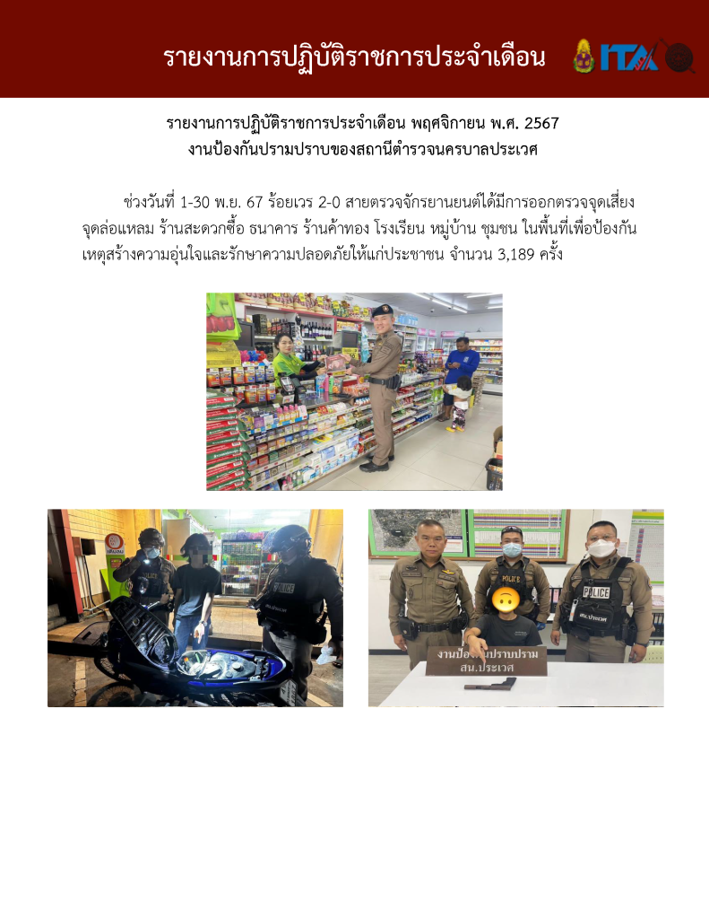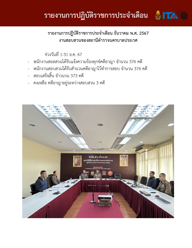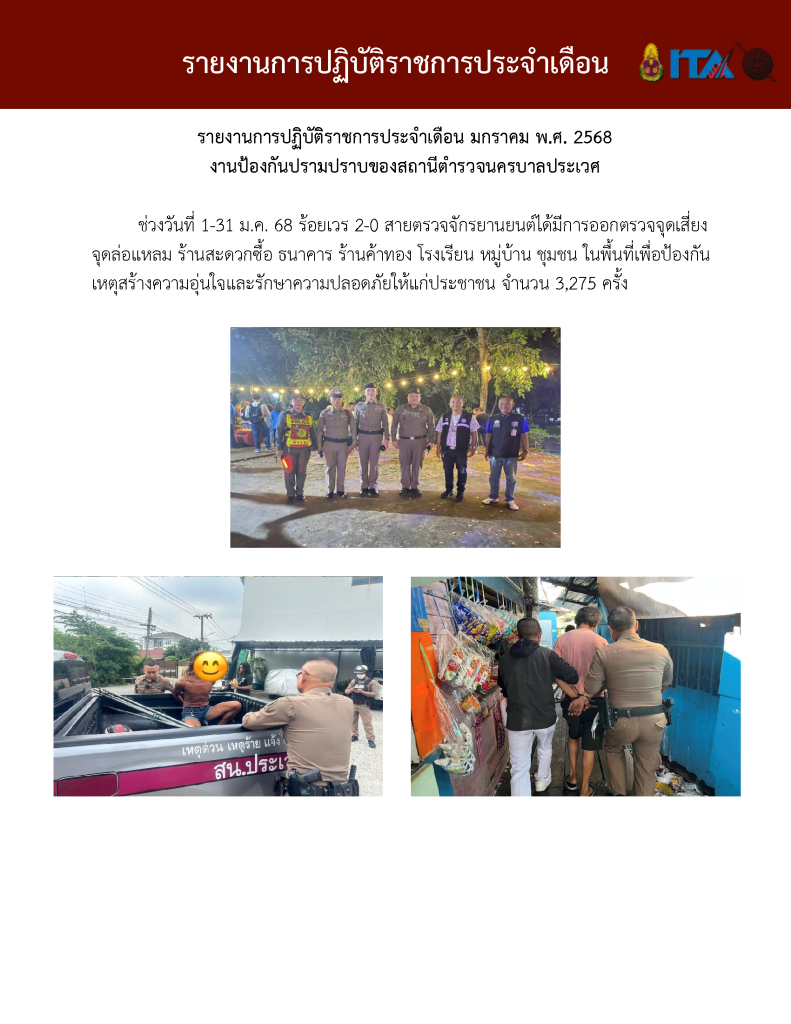 O7 รายงานการปฏิบัติราชการประจำเดือน รายงานการปฏิบัติราชการ ประจำปีงบประมาณ พ.ศ. 2568 รายงานการปฏิบัติราชการงานป้องกันปรามปราบปี 2568 ตุลาคม 2567 - มีนาคม 2568 Download PDF Download Word รายงานการปฏิบัติราชการงานจราจรปี 2568 ตุลาคม 2567 - มีนาคม 2568 Download PDF Download Word รายงานการปฏิบัติราชการงานสอบสวนปี 2568 ตุลาคม 2567 - มีนาคม 2568 Download PDF Download Word รายงานการปฏิบัติราชการงานสืบสวนปี 2568 ตุลาคม 2567 - มีนาคม 2568 Download PDF Download Word รายงานการปฏิบัติราชการงานธุระการปี 2568 ตุลาคม 2567 - มีนาคม 2568 Download PDF Download Word