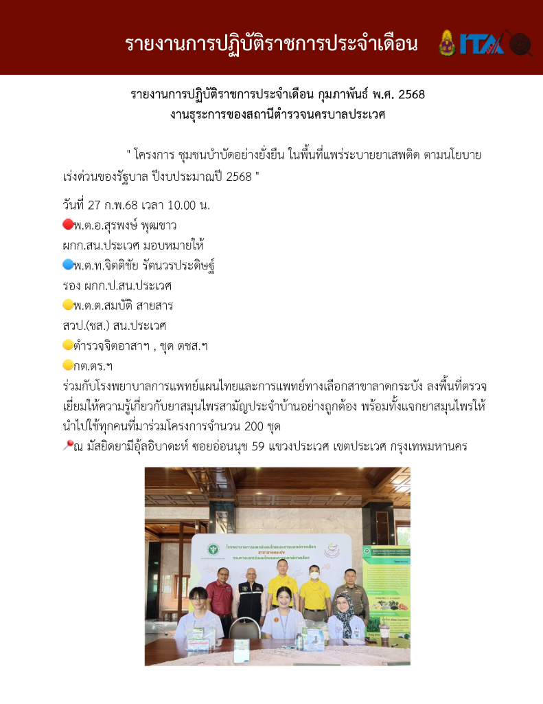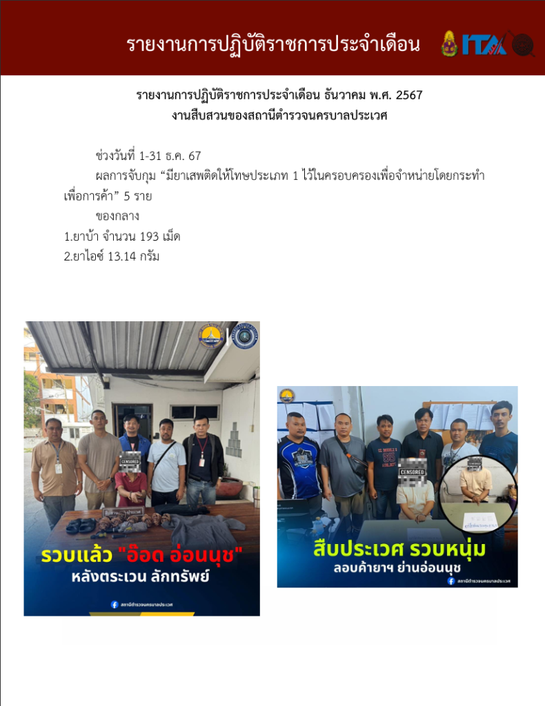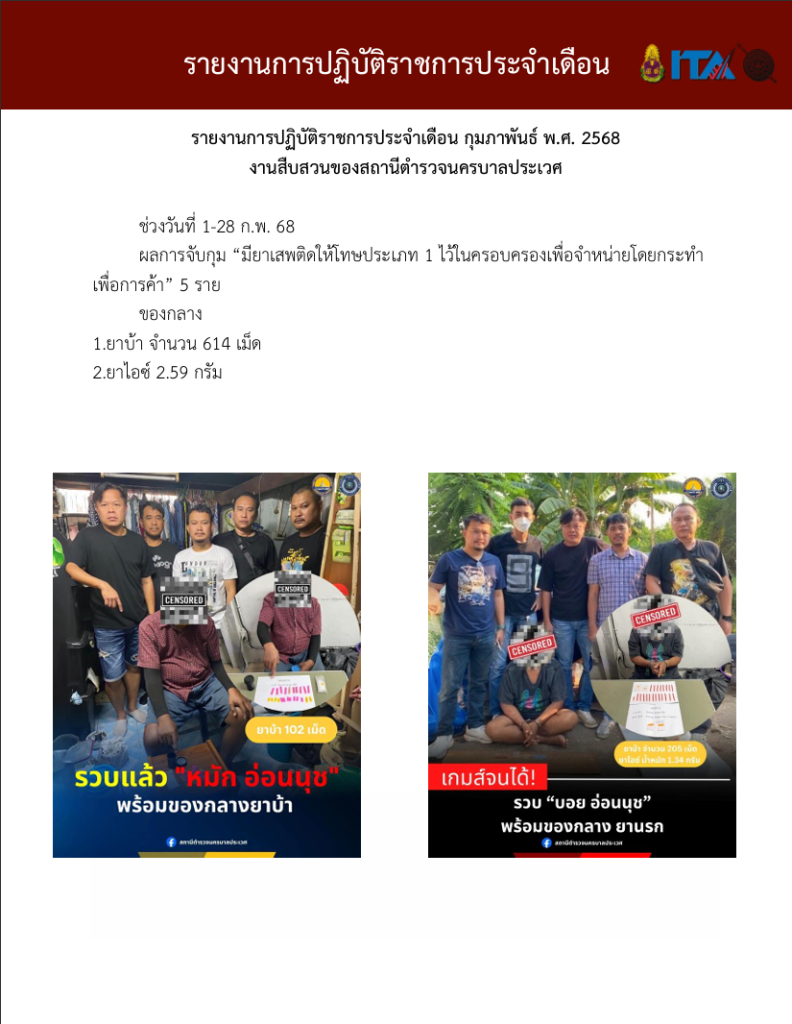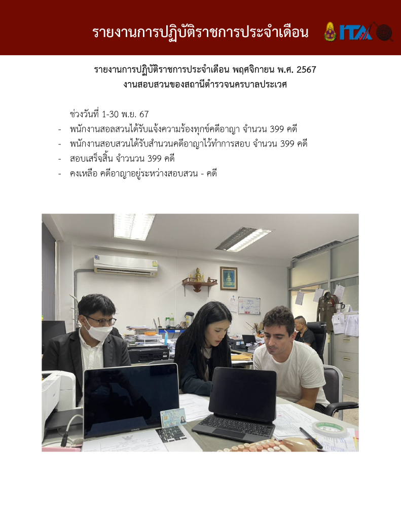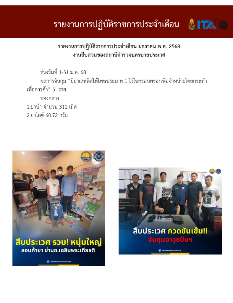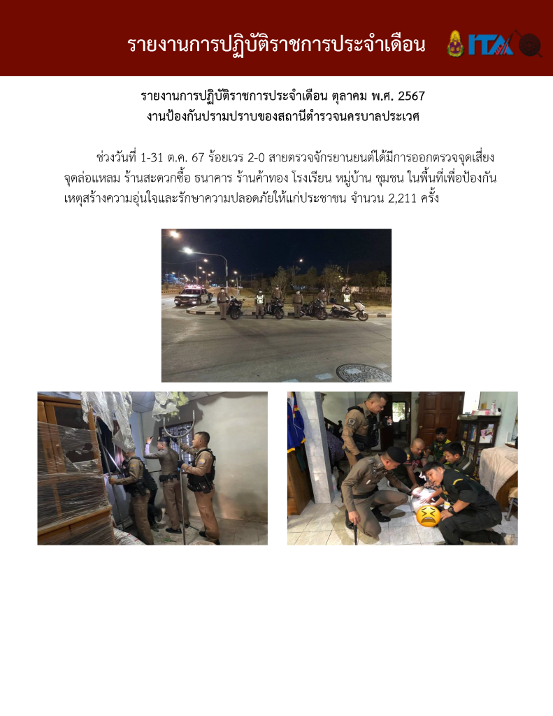 O7 รายงานการปฏิบัติราชการประจำเดือน รายงานการปฏิบัติราชการ ประจำปีงบประมาณ พ.ศ. 2568 รายงานการปฏิบัติราชการงานป้องกันปรามปราบปี 2568 ตุลาคม 2567 - มีนาคม 2568 Download PDF Download Word รายงานการปฏิบัติราชการงานจราจรปี 2568 ตุลาคม 2567 - มีนาคม 2568 Download PDF Download Word รายงานการปฏิบัติราชการงานสอบสวนปี 2568 ตุลาคม 2567 - มีนาคม 2568 Download PDF Download Word รายงานการปฏิบัติราชการงานสืบสวนปี 2568 ตุลาคม 2567 - มีนาคม 2568 Download PDF Download Word รายงานการปฏิบัติราชการงานธุระการปี 2568 ตุลาคม 2567 - มีนาคม 2568 Download PDF Download Word